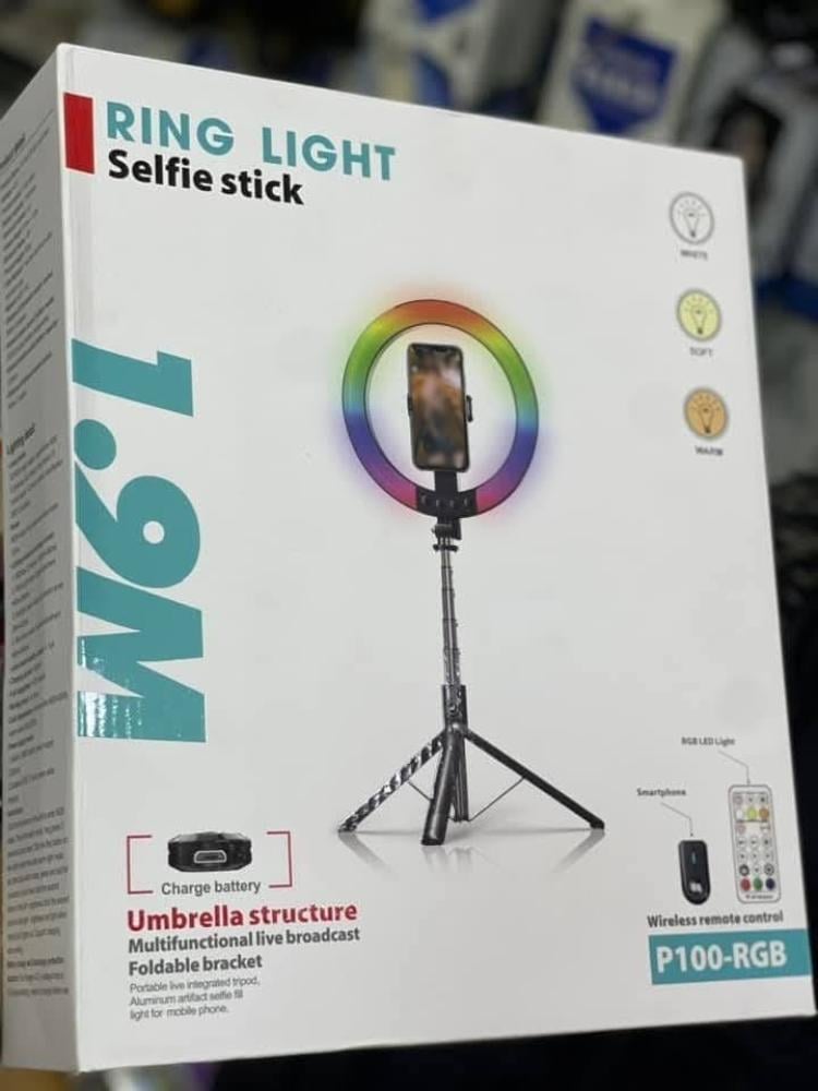 P100-RGB Ring Light هي وحدة إضاءة متكاملة ومخصصة لصنّاع المحتوى، تقدم تجربة تصوير احترافية بفضل خيارات الإضاءة المتنوعة (أبيض – ناعم – دافئ – RGB)، وحامل ثلاثي مدمج قابل للطي وهيكل مظلي سهل الاستخدام. تأتي مزودة بريموت تحكم لاسلكي وبطارية قابلة للشحن، ما يجعلها مثالية للبث المباشر، التصوير السيلفي، وتسجيل الفيديوهات في أي مكان.