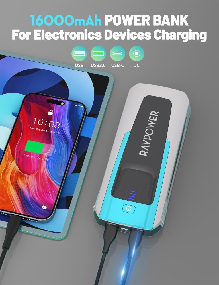 مشغل سيارة وبطارية راف باور جامب ستارتر بسعة 16000 ملي امبير بقوة 59.2 واط