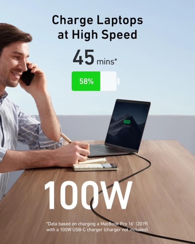 - القدرة: يدعم شحن سريع بقوة تصل إلى 100 واط (20 فولت / 5 أمبير)